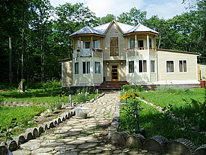 Центр - это большой дом в 2 этажа, в 10 жилых комнат. Комнаты оборудованы 2-х спальными кроватями, плетеной мебелью, зеркалом, вешалкой и TV. В доме так же находится малая гостиная, бильярдная, холл с камином и большим телевизором (спутниковое телевиденье, прокат CD дисков), гостевой зоной (обеденной). В доме так же оборудованы 3 туалетные комнаты. Несколько комнат, возможно, оборудовать дополнительными местами для детей (раскладушками).