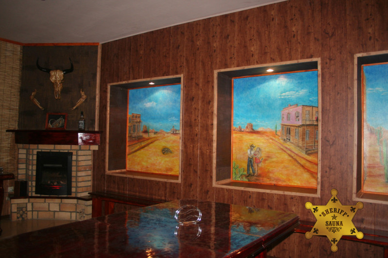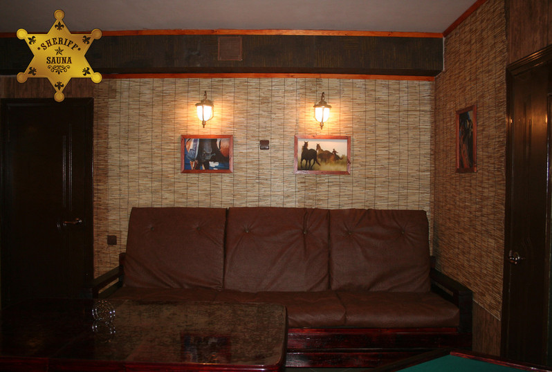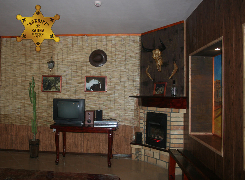 Уютная сауна! В стиле "Дикого запада" , в вашем распоряжении отличная финская парная, басейн, комната отдыха, караоке, покерный стол.