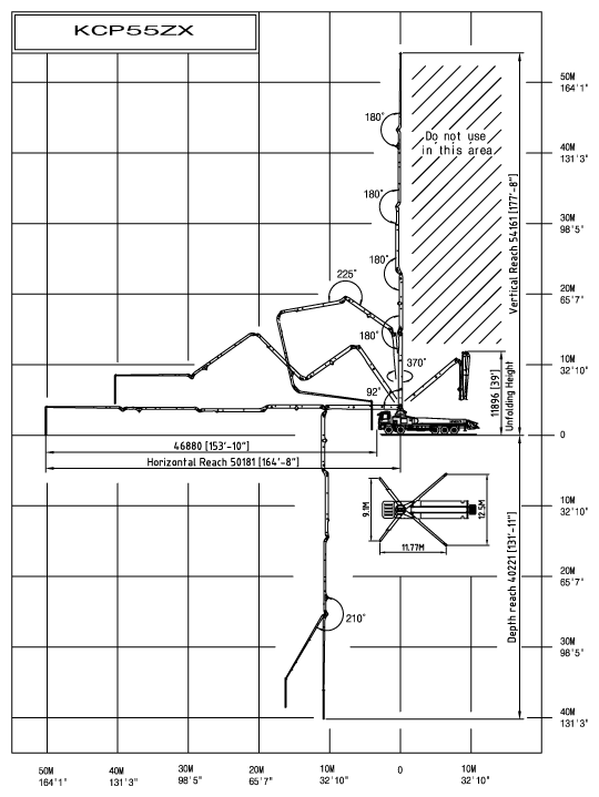 Дальность подачи перед машиной 46.9 м