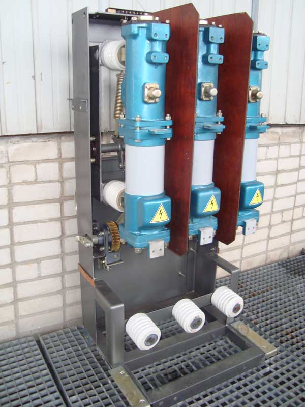 Масляный выключатель ВМП-10К выкатного типа для встраивания в шкафы КРУ. Номинальные токи 630, 1000 и 1600А, ток отключения 20, 31.5 кА.