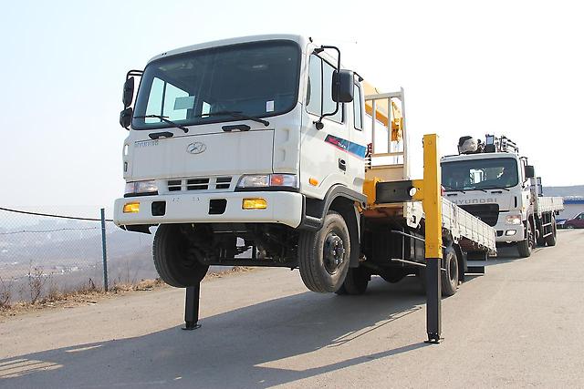 Новый бортовой грузовик MEGA TRUCK GOLD 2013 г. выпуска в комплектации EXTRALONG из Кореи с манипулятором SOOSAN SCS 514 высокими передними аутриггерами и люлькой для производства высотных работ