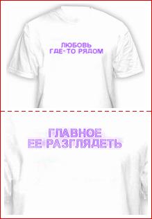 Предлагаем яркие и запоминающиеся футболки с оптическим эффектом! Отличный подарок на день Влюбленных!Уникальность такой футболки заключается в следующем: надпись состоит из двух: вблизи виден один текст, издали – другой. Можно выбрать себе футболку с готовой надписью, а можно нанести на нее свой оригинальный текст. Все размеры! Представлены мужские, женские модели. Демократичные цены. Высокое качество! Доставка по всей России! С ассортиментом можно познакомиться в интернет-магазине x-footbolka.Сайт - Эл. адрес - sale@x-footbolka.ruТел. +7(383)292-24-72