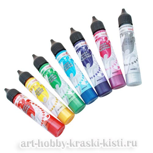 Контуры Van Pure создают жемчужный эффект на различных видах поверхностей. Контуры Жидкий жемчуг Van Pure предназначены для росписи: кожи, текстиля, замши, картона, бумаги, древесины и глины.