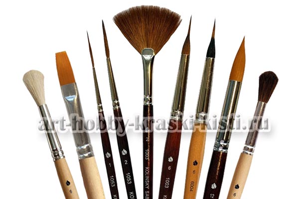 Ассортимент кистей включает: двухуровневые, плоские, овальные, веерные, круглые, лайнеры кисти на короткой и удлиненной ручке. Профессиональные кисти, а также ученические и школьные кисти подойдут для различных техник живописи, графики, моделирования.