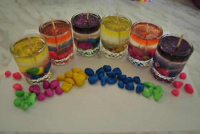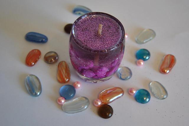 - гелевые свечи. В качестве основного материала для приготовления этих свечей используется свечной гель. Для декора гелевой свечи можно использовать различные декоративные материалы: бусины, цветной песок, ракушки, сухоцветы, кофейные зерна-все, на что способна ваша фантазия!
