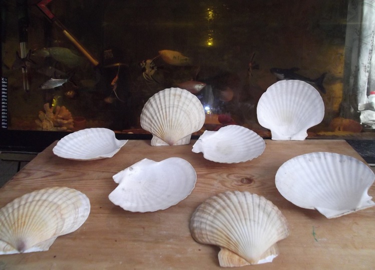 Оптовые поставки раковин морского гребешка. На отделку строительным компаниям, как элементы ландшафтного дизайна, декорирование витрин в ресторанах и интерьере. Цены: 30 рублей - до 10 см диаметр, 50 рублей - 10-15 см.