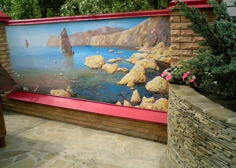 Если не желаете выделяться, то выгляните из окна своего домика. На Вас все так же уныло смотрит однотонная стенка Вашего забора. Мы с Вами вместе так же можем исправить этот казус и через определенное время Вы с гордостью или с улыбкой будете любоваться видом из окна,что положительно отразиться на Вашем настроении и здоровье. А это наш девиз: Только положительное и здоровое. Ваша фантазия воплотится и будет показана кистью умелого художника.