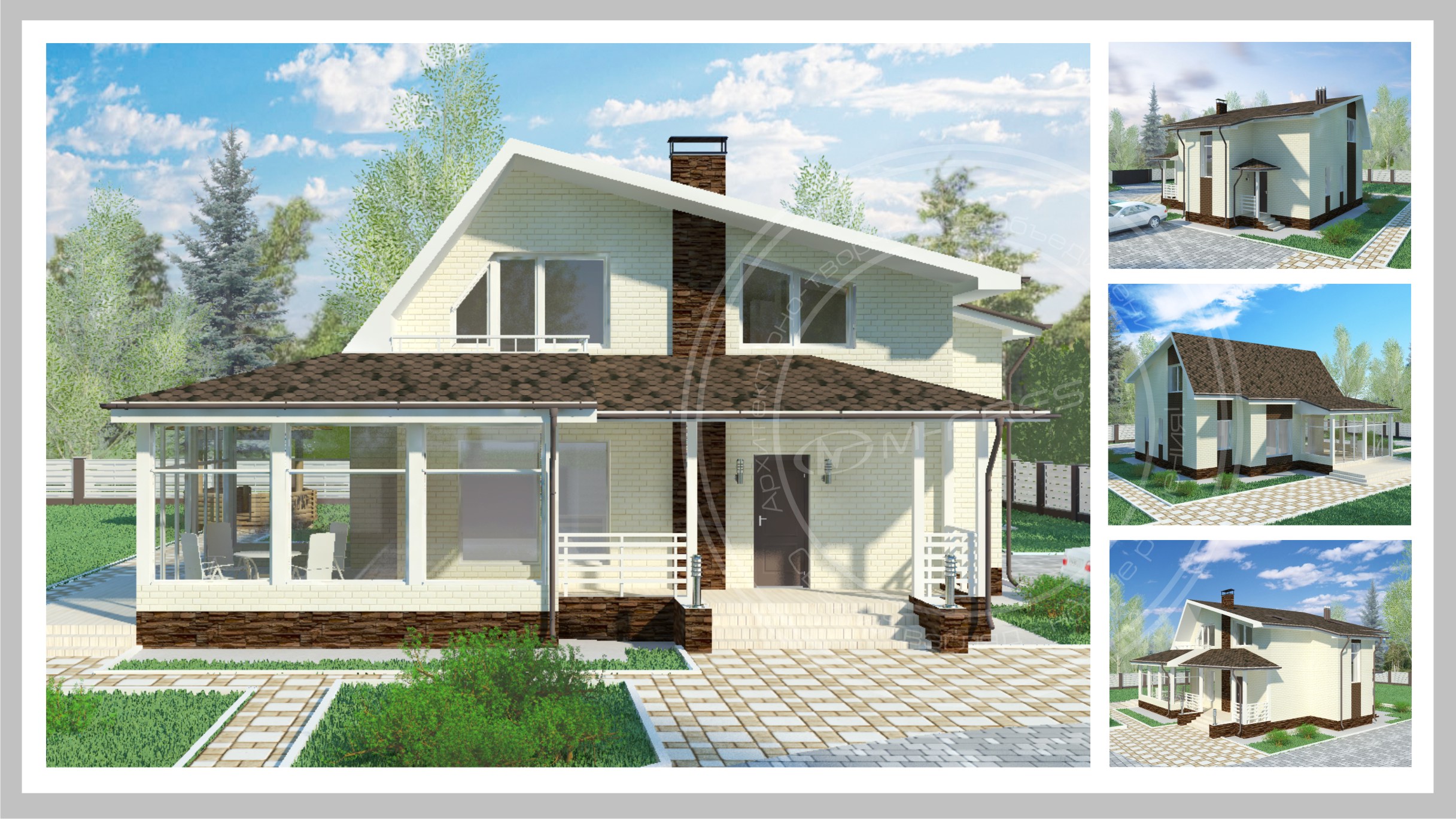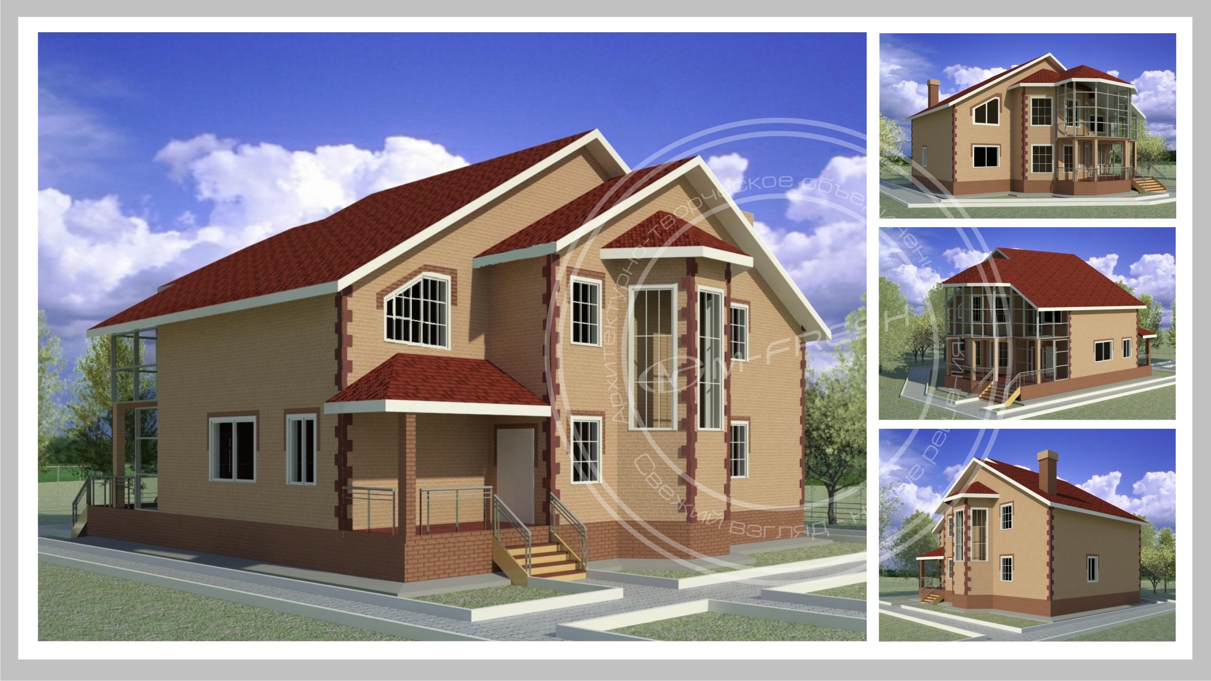 Например,даже если вы уже построили коробку дома, можно доработать проект даже на такой стадии. Посмотреть как будет выглядеть кровля при таком варинте, с такими фронтонами, а может быть этот материал и цвет фасада не совсем актуален при такой форме кровли и окон в целом.