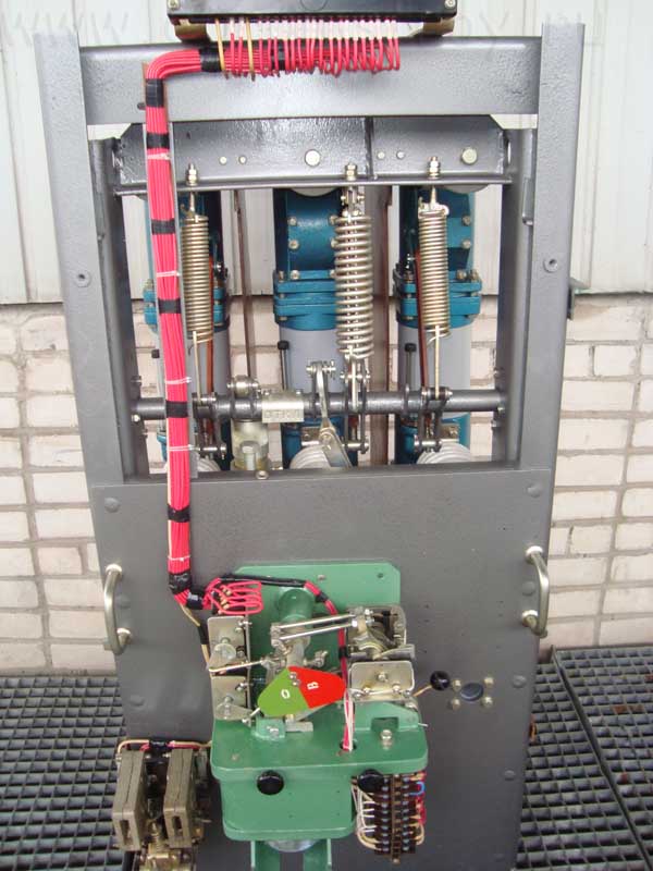 Выключатель выкатного исполнения ВМП-10К для ячеек КРУ-2-10 (три полюса на раме в сборе на выкатной тележке с приводом ПЭ-11, ПП-67).