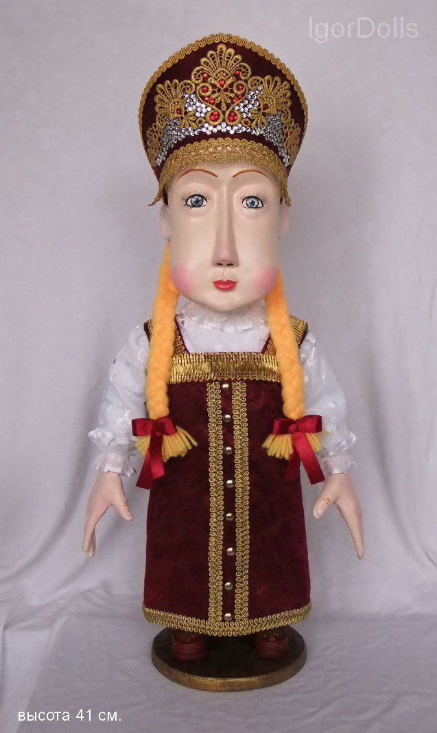 От Игоря Выгузова, комплект из двух кукол в национальных костюмах. Материалы: самовысыхающая глина, текстиль, тесьма, стразы, лента, шерсть. Ручная работа. Экз.единственный. 2014 г.