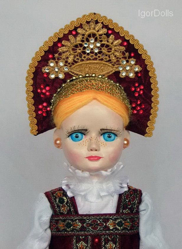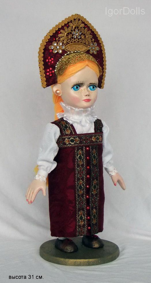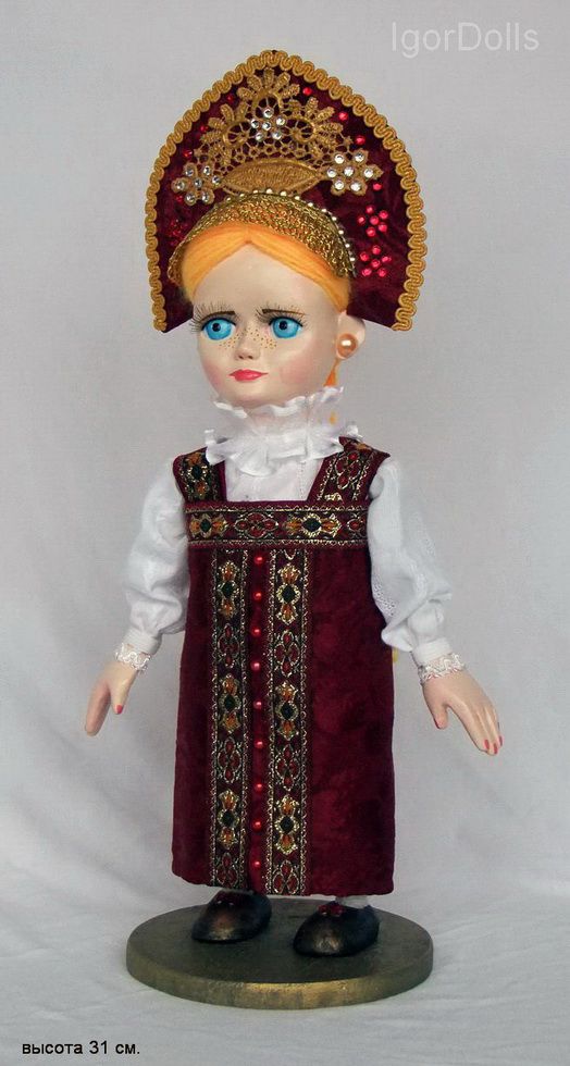 Авторская сувенирная куколка от Игоря Выгузова, Высота 31см. в стилизованном национальном костюме. Материал : Полимерная самовысыхающая глина Fimo, текстиль, тесьма, стразы, шерсть, ламинат 2014 г. экз. единственный. Ручная работа.