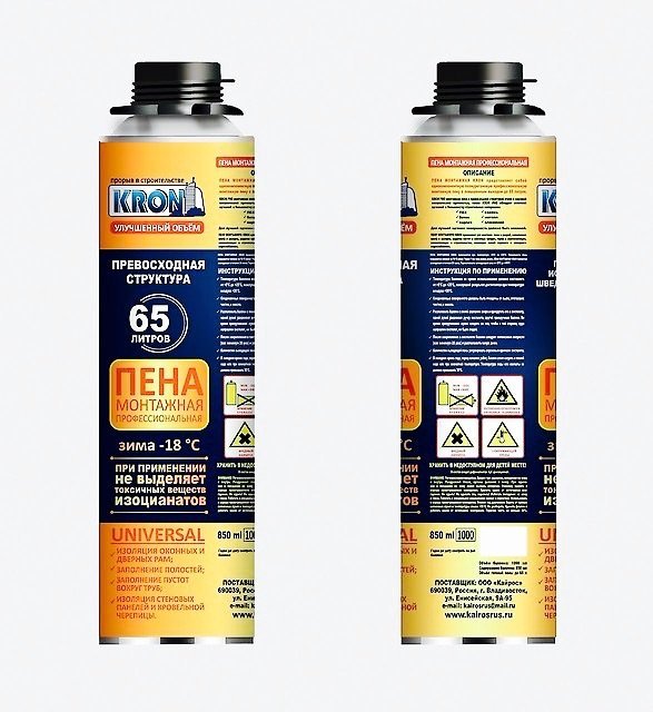 Компания ООО "Кайрос" является одним из ведущих производителей профессиональной пены Крон на российском рынке.Монтажная Пена "КРОН" производится с использованием шведских технологий.