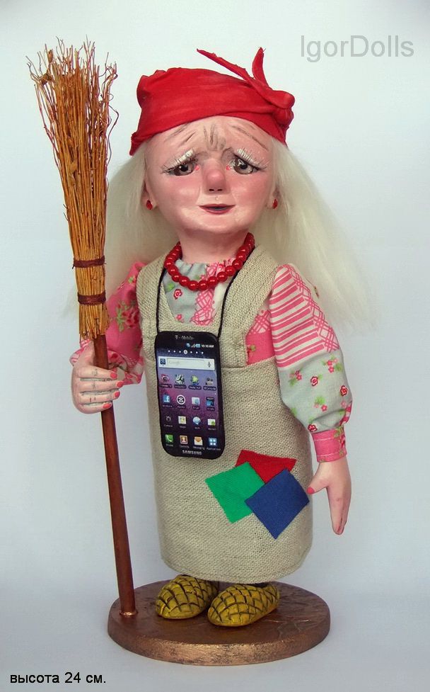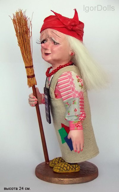 Авторская кукла от Игоря Выгузова, Ёжка. Из цикла " Папаллельные миры " Высота 22 см. Материал : Полимерная самовысыхающая глина Paper clay ( Юж.Корея ), текстиль, трикотаж, ламинат.Аксессуары: метла.