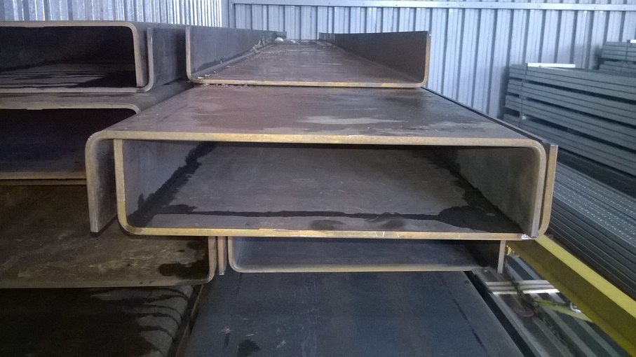 Гнутые швеллера и уголки: Швеллер гнутый 400х115х8, швеллер гнутый 400х115х10, швеллер гнутый 400х115х12 - в замен снятых с производства горячекатаных швеллеров 40, 40П и 40У. Швеллер 360х110х8, швеллер 360х110х10, швеллер 360х110х12 - в замен снятых с производства швеллеров 36, 36У и 36П. Так же гнутые швеллера 400х95х8 и другие размеры толщиной до 16 мм. Уголки неравнополочные 100х63х10, 110х70х8, 125х80х12, 160х100х12, 160х100х14, 180х110х10, 180х110х12, 200х125х12, 200х125х14, 200х125х16. Уголки равнополочные 100х14, 100х16, 125х14, 125х16, 160х14, 220х14, 220х16, 250х16. Гибка листа 8, 10, 12, 14, 16 мм. Длина гиба - до 12 метров!