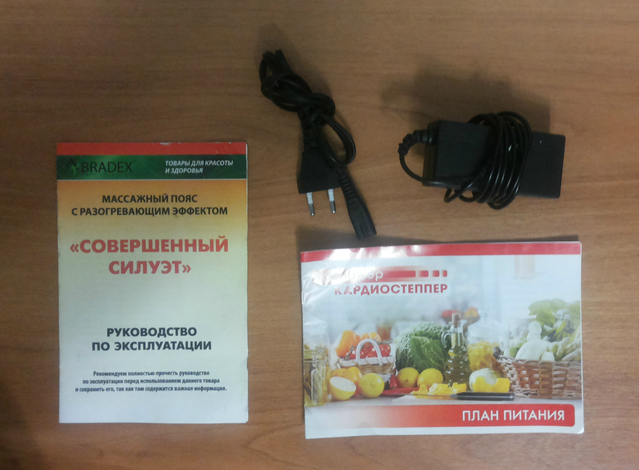 В комплект входят пояс с пультом управления, адаптер, шнур питания, и подробная инструкция по эксплуатации на русском языке.