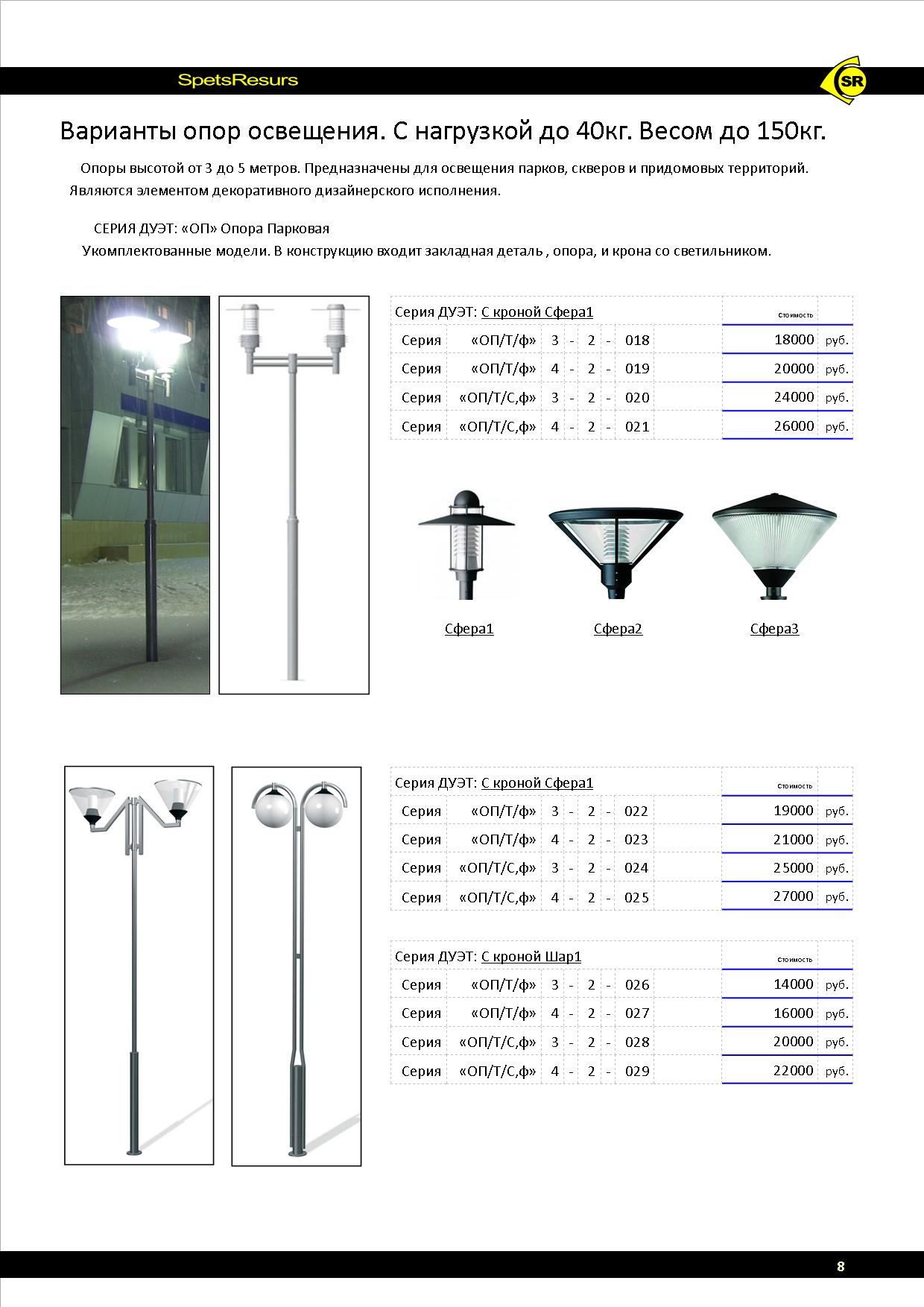 Опоры освещения "столбы и столбики" (парковые, декоративные, дорожные и специального назначения).