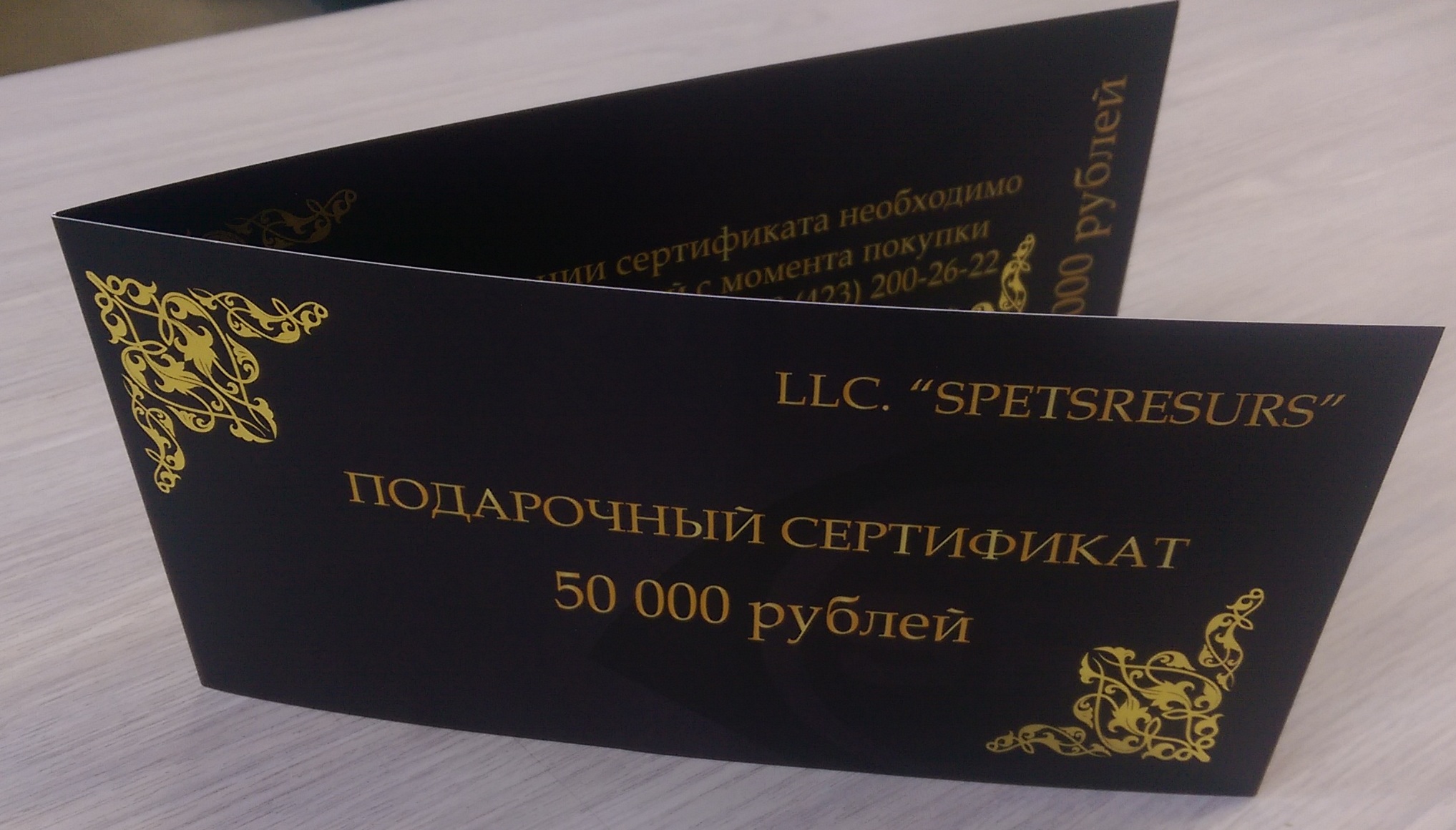 Компания «СпецРесурс» предлагает Подарочный Именной Сертификат для приобретения в подарок Вашим родным и близким, либо просто для себя.