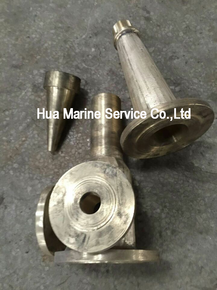 Hua Marine Service Co.,Ltd provides ejectors by materials of Bronze & Stainless steel & Titanium alloy . An ejector is a vacuum pump that does not have any mechanical drive parts. Instead, it is driven by injected steam or similar mediums. It has a simple construction for virtually trouble-free operation. And it is easy to be manufactured for large volume rate. Standalone ejectors can compress up to atmospheric pressure, and can be used in series to attain even higher vacuum pressure. They can be used with other vacuum pumps to build a vacuum system. We can develop new product by samples or drawing.