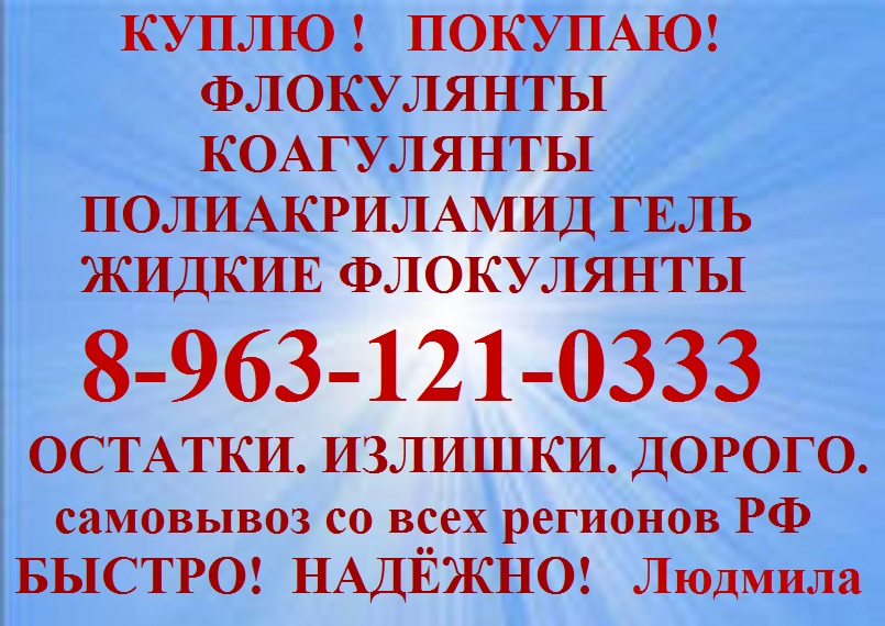 Покупаем невостребованные ионообменные смолы. Покупаем смолы импортного производства. Покупаем Тульсион (Tulsion), куплю Давекс (Dowex), предложите Пьюролайт (Purolite), закупаем Амберлайт(Amberlite), покупаем Леватит( Lewatit). Нас интересуют любые объемы. Приобретаем смолы с хранения, из неликвидов, остатки с цехов водоподготовки. Предлагайте, звоните, возможен самовывоз, оплата наличными. 89631210333 Людмила.