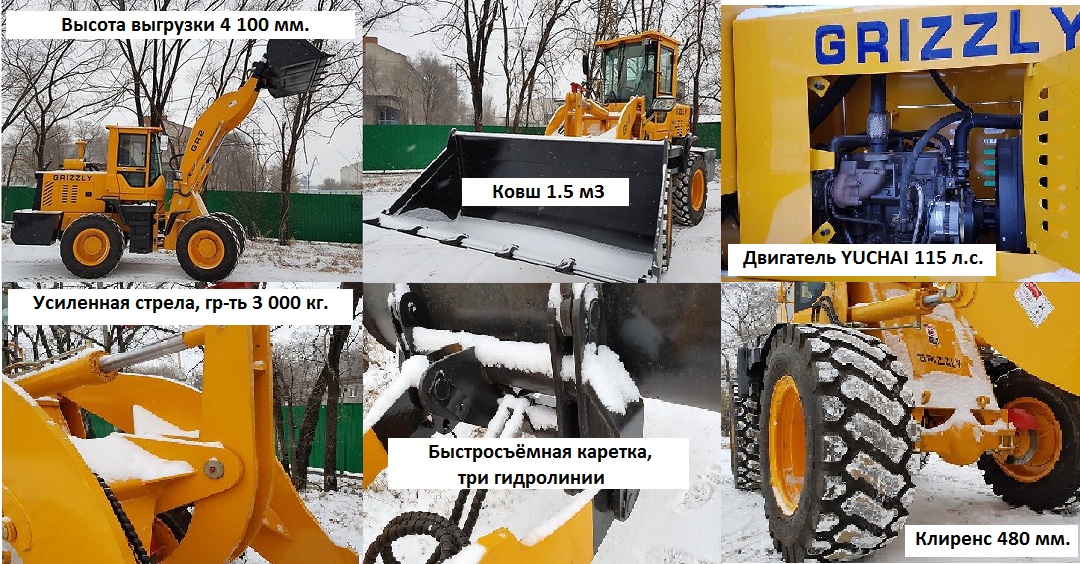 GRIZZlY - принципиально новая модель, являющаяся модернизированным фронтальным погрузчиком модельного ряда "SHANLIN" ZL30/ "ATLANT" 300L, зарекомендованным временем и качеством в России