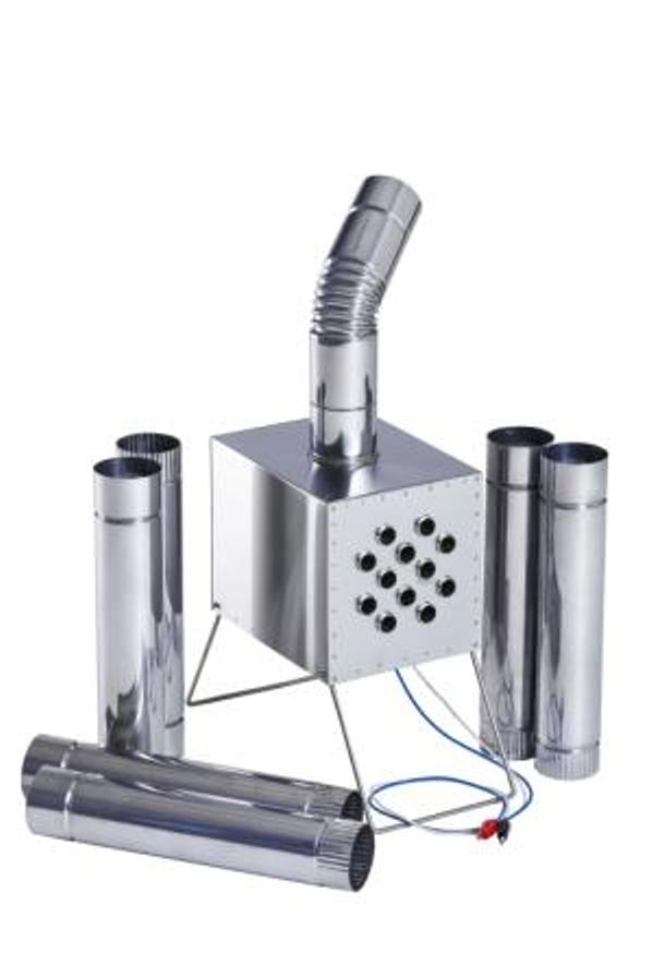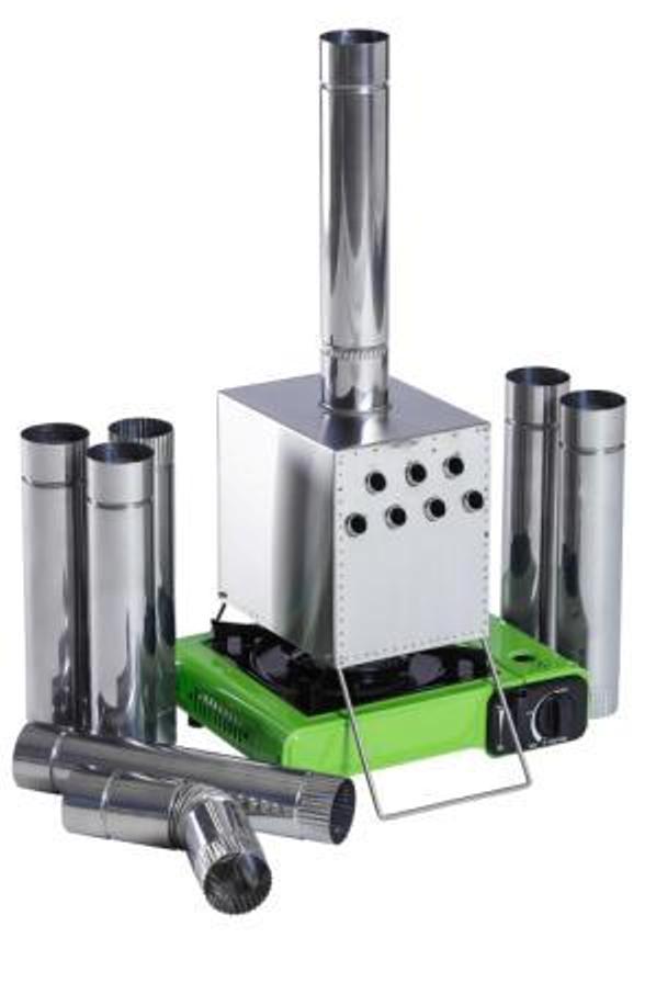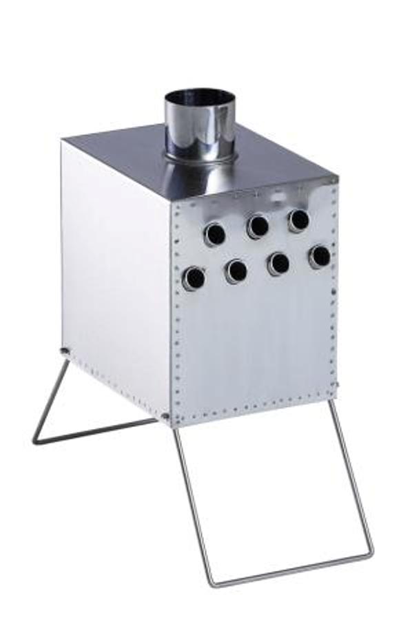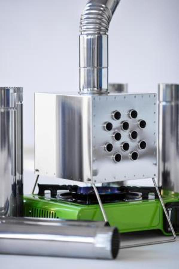 Теплообменник предназначен для обогрева помещений (зимних палаток) при помощи походной газовой плитки или горелки любого типа.