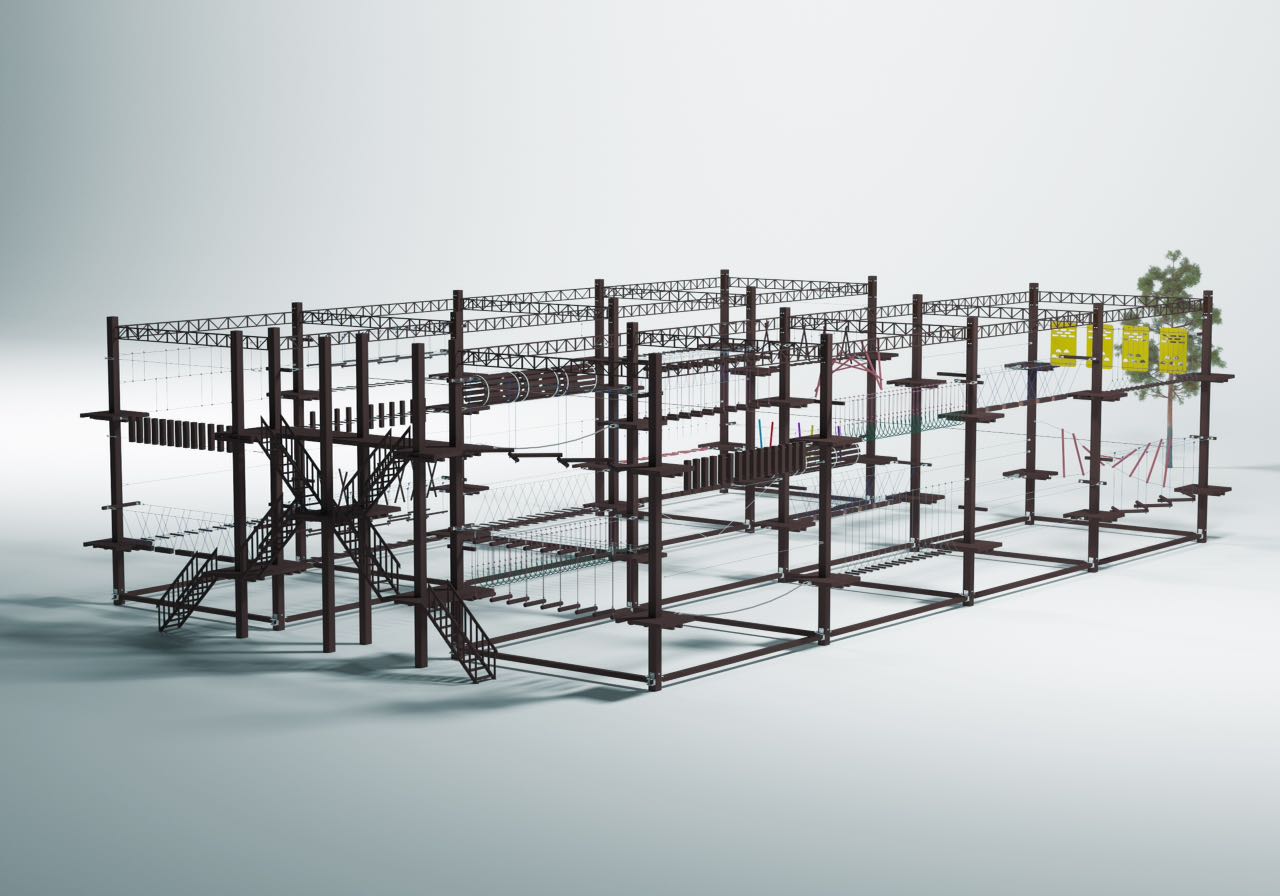 Веревочный парк представляет собой последовательность препятствий различной степени сложности на высоте от 0,5 до 12 метров, закреплённых на стволах деревьев или опорах. В зависимости от целевого назначения парка подбираются элементы-этапы составляющие маршрута веревочных парков.