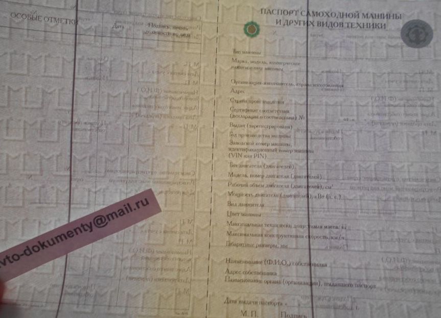 ПСМ - Паспорт самоходной машины.Бланки есть в наличии старого образца с 2006 по 2009 год,более нового 2010 по 2016 год и нового образца с 2016года.
