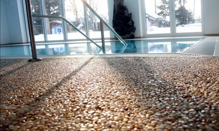 Напольное покрытие каменный пол с использованием кварцевого песка. Минимальные сроки изготовления и демократичные цены. Каменный пол изготавливается методом наливного пола с использованием цветного кварцевого песка, который запечатывается слоем эпоксидной смолы. Кварцевый песок, обладает чистотой, не содержит глины и других примесей и обеспечивает полу прочность, высокие эксплуатационные и декоративные характеристики. Кварцевый пол может применяться, как снаружи, так и внутри помещения - для оформления входных групп, в помещениях с повышенными механическими нагрузками для создания нескользящего покрытия. Покрытие для склада, паркинга, пандусов, гаражей, мойки, теплицы, медицинских и общественных учреждений, для офисов, торговых центров, бассейнов, ванных комнат, квартиры, коттеджей, садовых дорожек, террас, лоджии и балкона, беседки и это только небольшой перечень, где можно использовать каменный ковер. Каменный ковер является крепким и надежным покрытием и обладает высокими эксплуатационными характеристиками: долговечность, отсутствие шва, износоустойчив к механическим нагрузкам, не требует особой подготовки основания, легко моется, стоек химическим и агрессивным, огромная цветовая гамма и прекрасно проводит тепло, что позволяет уложить тёплый пол под это покрытие.