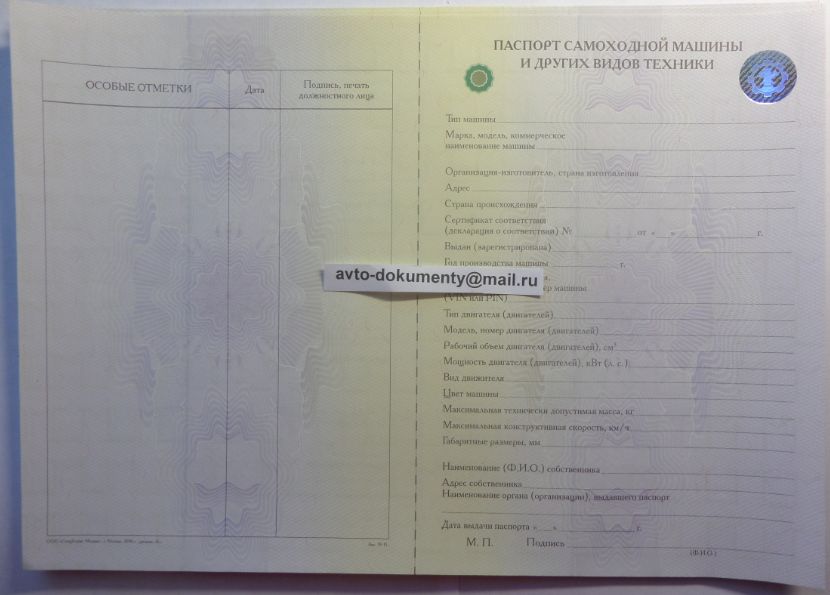 ПСМ - Паспорт самоходной машины.Бланки есть в наличии старого образца с 2006 по 2009 год,более нового 2010 по 2016 год и нового образца с 2016года.