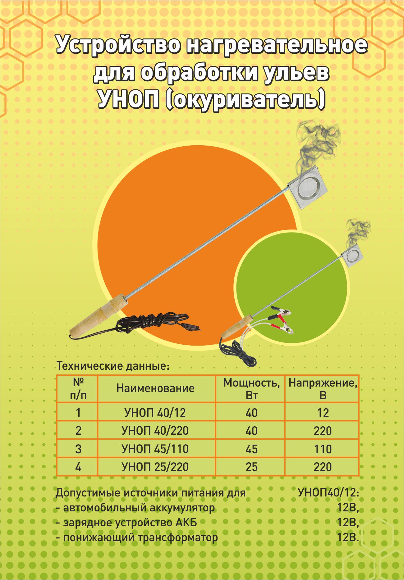 • окуриватели для обработки ульев 40Вт,12В;