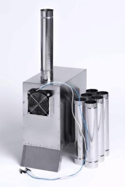 Принудительная циркуляция осуществляется с помощью вентилятора напряжением 12 В, установленного в задней части устройства. При эксплуатации теплообменника, дым и угарный газ отводятся через дымоходную трубу.