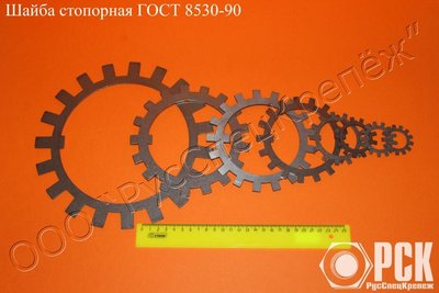 Производим шайбы стопорные по ГОСТ 11872-89 и ГОСТ 8530-90 для предотвращения разъединения элементов при вибрационных нагрузках. Данные шайбы применяются в сочетании с шлицевыми гайками : размер лапок шайб геометрически совпадает с размером паза в гайке. Внутренний диаметр для шайб по ГОСТ 8530-90 от 10 до 280 мм, типы МВ, AMB, ВMB, для шайб по ГОСТ 11872-89 диаметры от 4 до 200мм . Материал изготовления- сталь 3, 08 кп, 10, 20Х13,30Х13, 12Х18Н10Т, 14Х17Н2, а также цветные и алюминиевые сплавы. Покрытие по желанию заказчика.