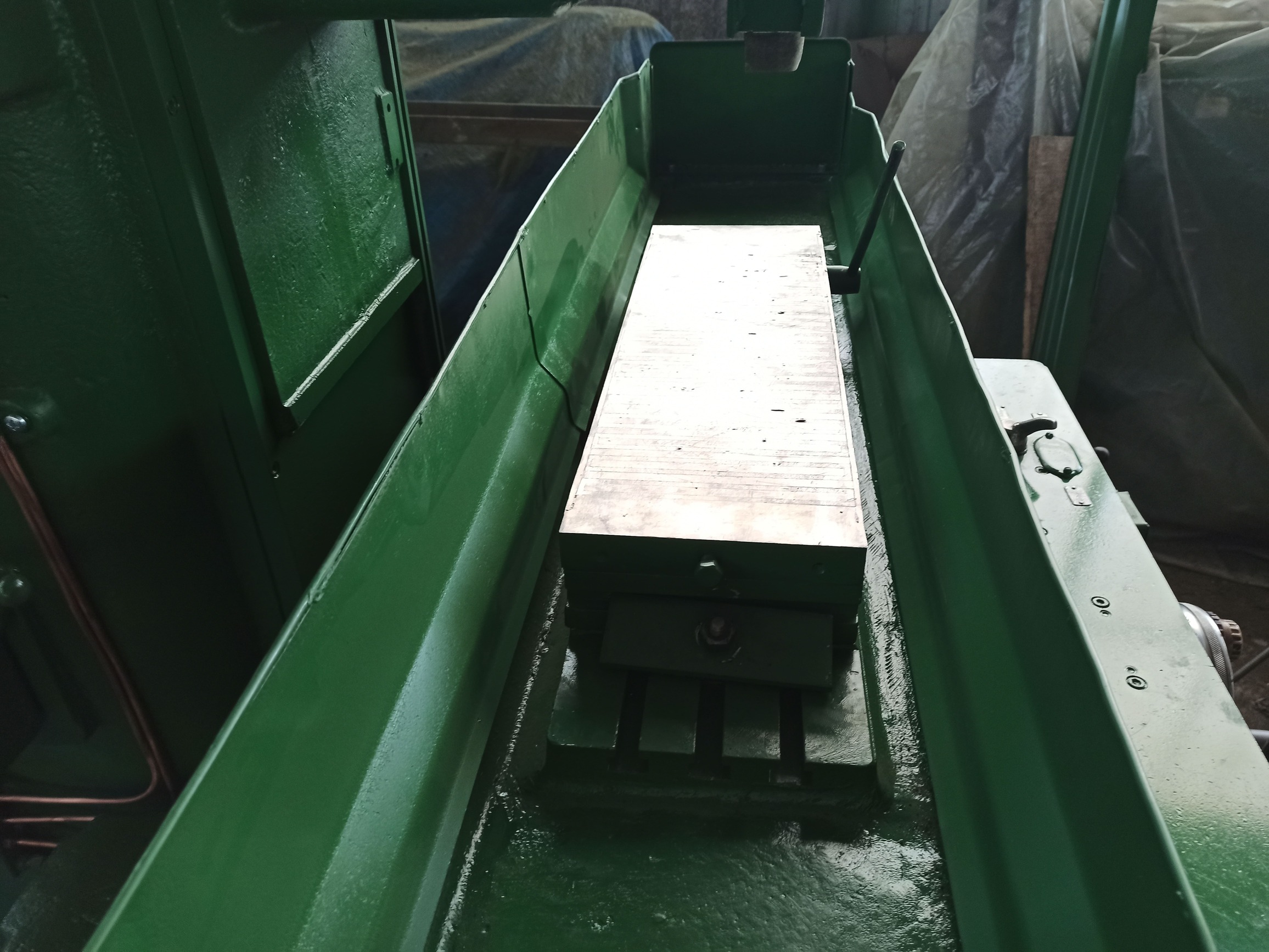 По направляющим крестового суппорта — плоской и V-образной в продольном направлении перемещается стол. Стол получает перемещение от гидроцилиндра, закрепленного между направляющими крестового суппорта.