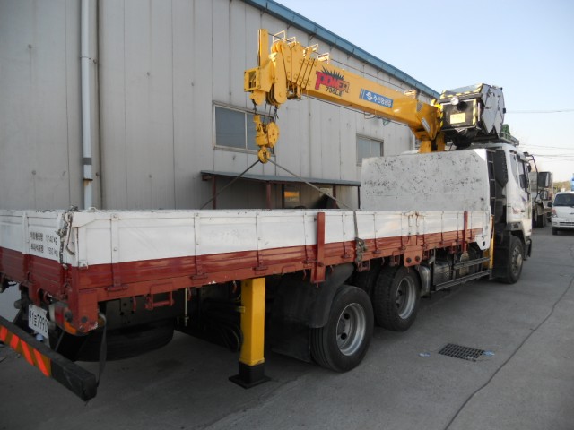 Манипулятор Daewoo Royal Novus 2009 год 7 тонн. Грузовик бортовой с крановой установкой. Шасси грузовик бортовой двухосный Daewoo Royal Novus 2009 года выпуска грузоподъемностью 7,5 тонн. Количество мест - 2 + спальник. Колесная формкла 4х2, дополнмительный неведущий мост-ленивец (аэроось). Двигатель дизельный производства Iveco F4AE, объемом - 5880см3, мощностью - 251 л.с. Шестиступенчатая коробка передач. Размеры: длинна - 10035мм, ширина - 2495мм, высота - 3 700мм. Длина борта - 6.45 м, ширина - 2.30 м.Стрела Soosan Power SCS736L II, вылетом - 22м, грузоподъемносью -7 т,6 вылетов,с 4-мя аутриггерами. Верхнее управление. Стоимость - 2 750 000 руб.