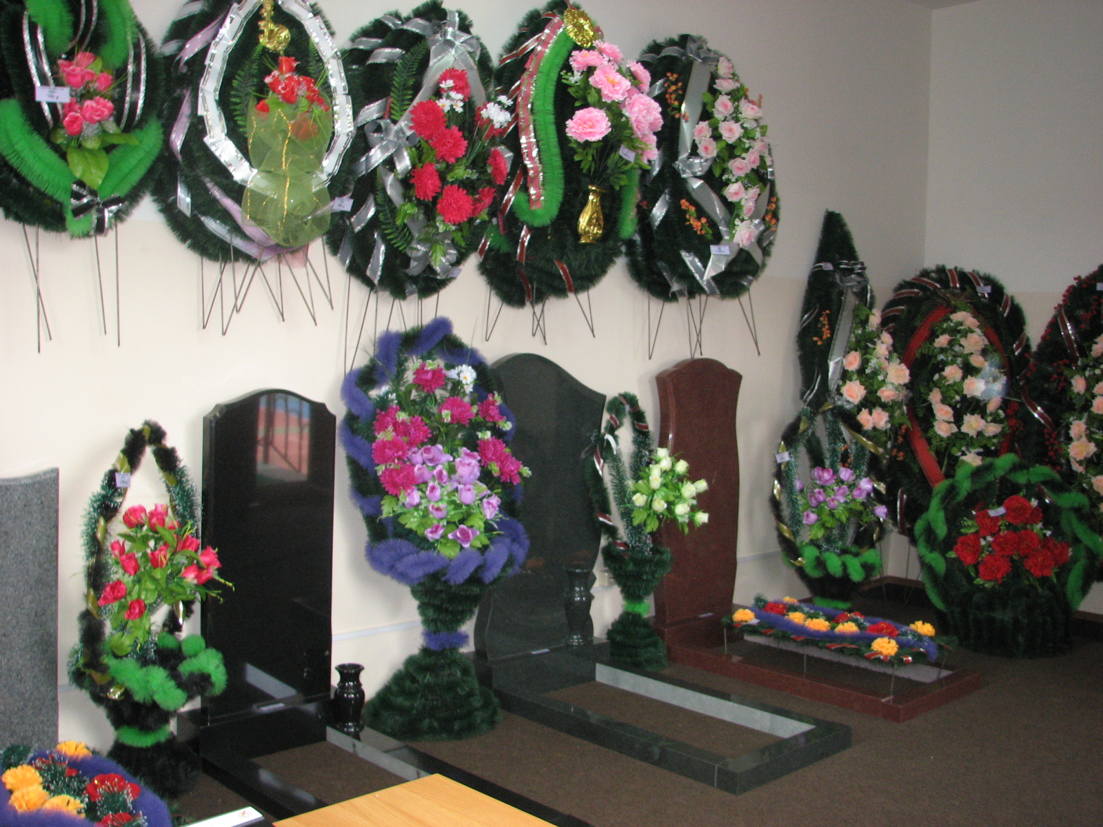 Венки, поминальные корзины.