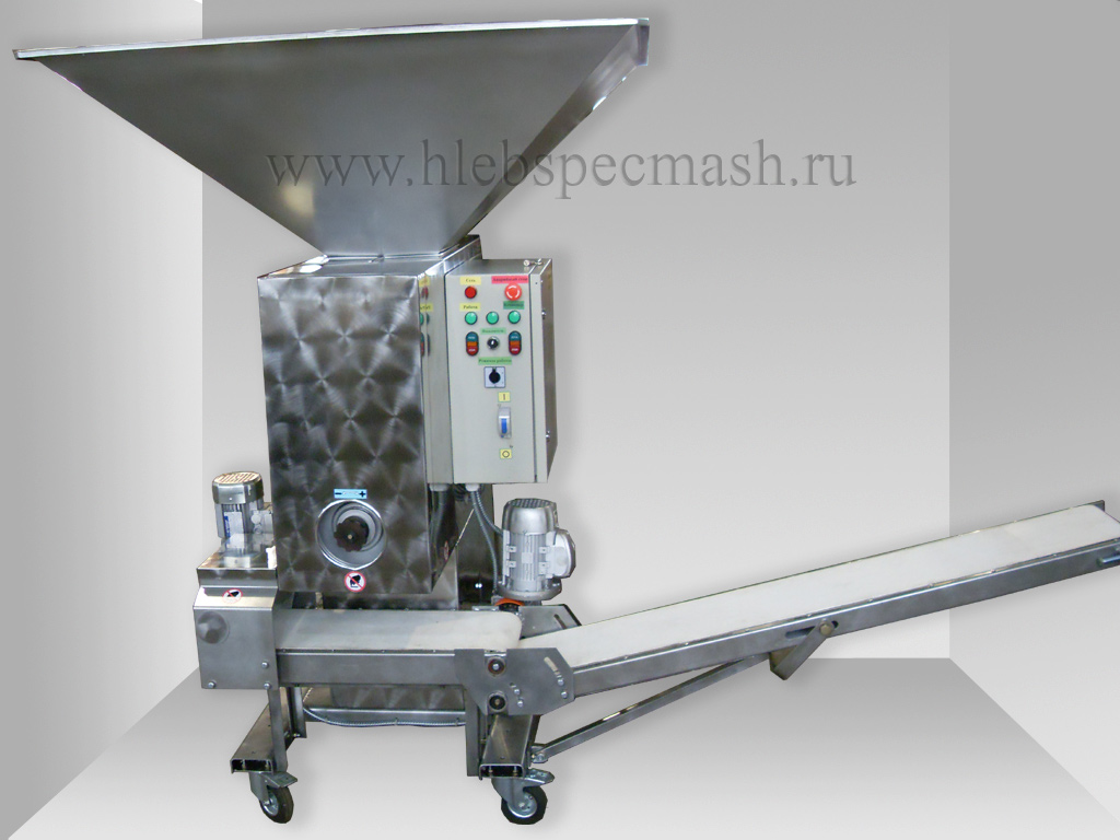 Предназначен для деления теста из ржаной, ржано-пшеничной и пшеничной муки на куски массой 0,8-2,0кг., с регулировкой производительности делительной головки и давления в шнековой камере. Может комплектоваться цепным транспортёром для укладки тестовых заготовок в хлебопекарные формы или ленточным транспортёром для приёма тестовых заготовок подового хлеба.