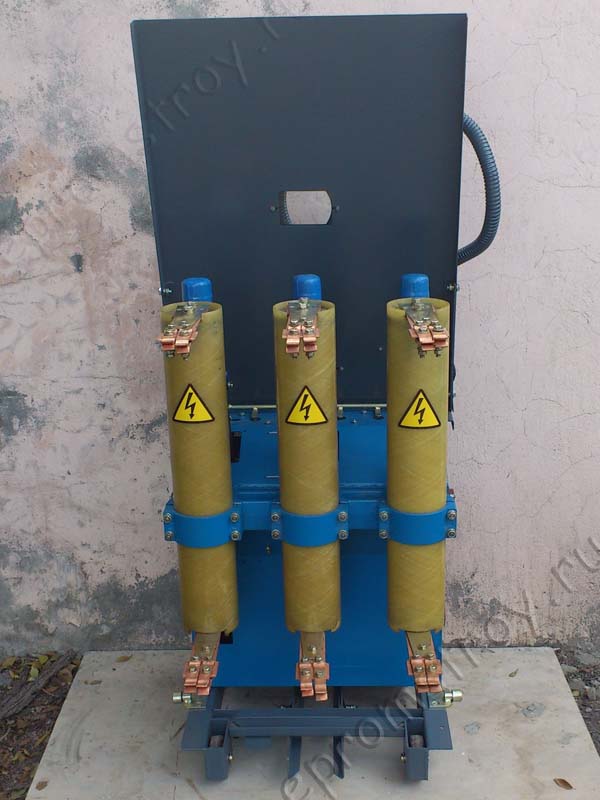 Продам из наличия на складе трехполюсный малообъемный масляный выключатель типа ВММ-10-400-10 У2 со встроенным пружинным приводом и блоком релейной защиты.
