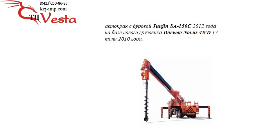Автокран с буровой Junjin SA-150C 2012 года на базе нового грузовика Daewoo Novus 4WD (грузоподъемностью 17 тонн) 2010 года
