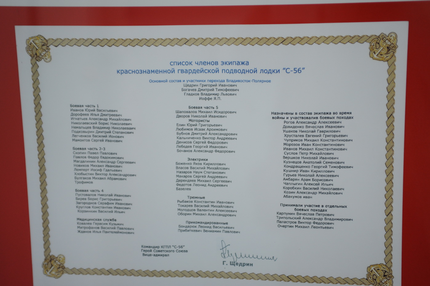 На лодке С-56 Ваш дед числится в списках экипажа БЧ-2-3. Однако более на самое лодке, кроме записи в этом перечнее к сожалению нет. Вот небольшой фоотчт с музея подводной лодки С-56. Экскурсавод сообщил, что на лодке не вся экспозиция, что=то готовится к предтоящему праздику 9-е мая, остальное в хранилище "Музея боевой славы". Ну собственно в музее дед нашелся ![]() Вот фотки: ![]() ![]() ![]() ![]() ![]() ![]() ______________________________