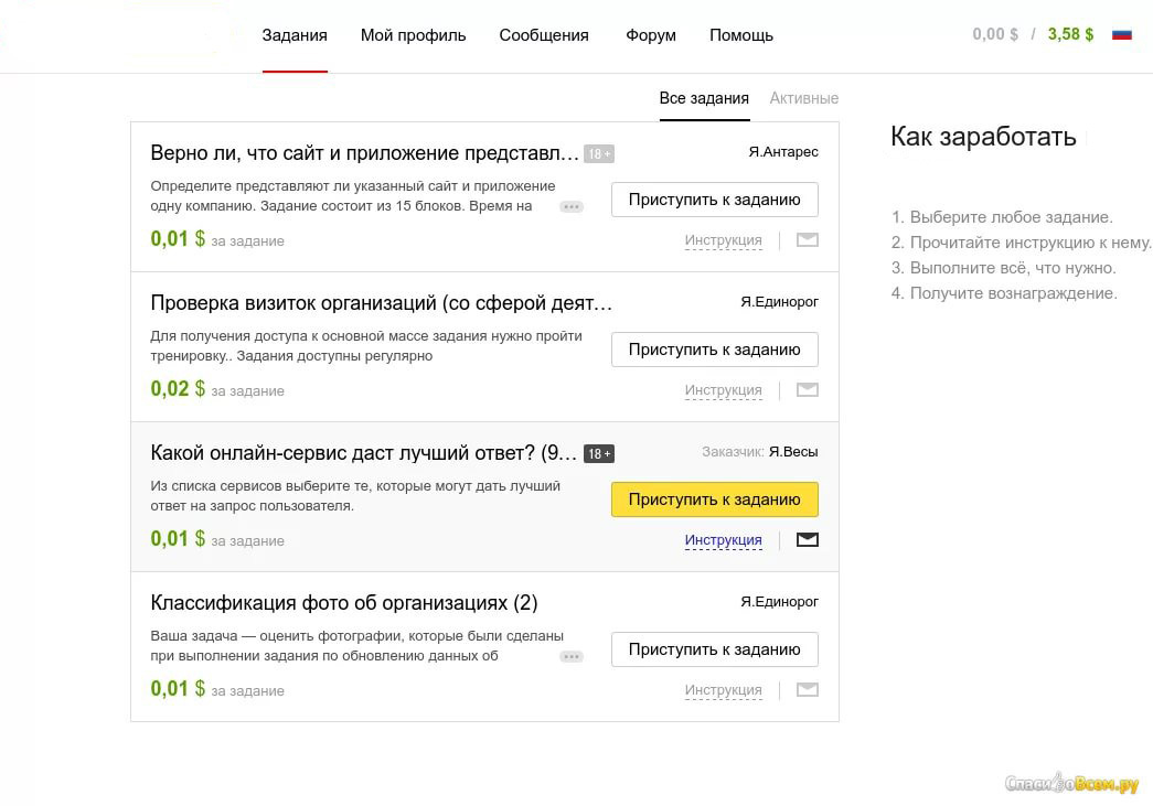 Раскрученный, платящий, рейтинговый сайт для заработка! Выполняйте задания и получайте достойную оплату. Не требуется аккаунтов в соцсетях! Стоимость заданий определяют заказчики. Вы можете вывести средства различными способами в зависимости от вашей страны. Все зарабатывающие в интернете имеют этот сайт у себя в обойме. Если вы до сих пор не зарегистрированы здесь, то упустили очень многое. Регистрируйтесь смело! ![]() ______________________________