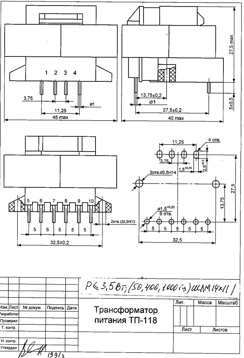 Трансформатор ТП-118-(3,5 Вт)- любые выходные параметры в пределах мощности типоразмера, частота сети 50, 400, 1000 Гц На данном типоразмере серийно изготавливается более 185 типономиналов Трансформатор питания ТП-118 (3,5 Вт) ГОСТ 14233-84 (50,400,1000