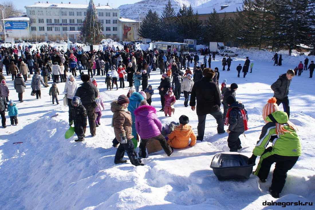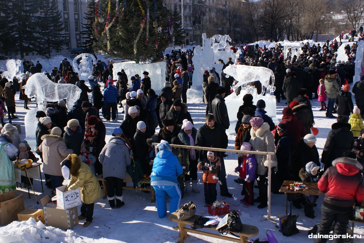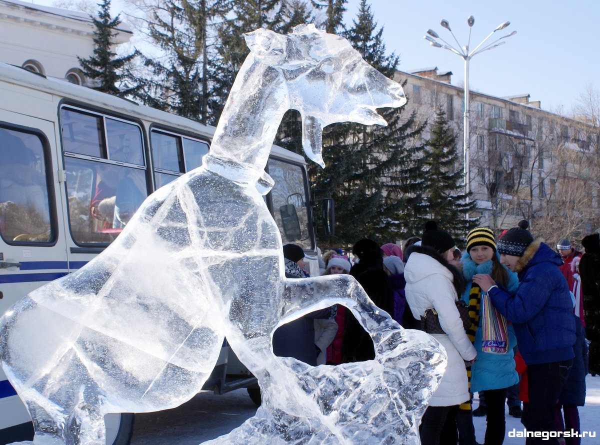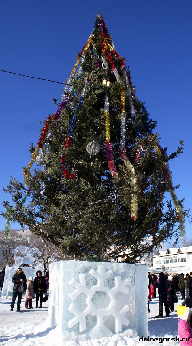 На центральной площади Дальнегорска начались общегородские мероприятия для жителей и гостей округа Сотни людей пришли не центральную площадь города, где специально к празднику построен новогодний ледовый городок. Местные художники хорошо потрудились, прежде чем здесь появились фигуры Деда Мороза и Снегурочки, зверей-символов года по восточному календарю, а также ледовый лабиринт, снежная горка и Праздничный ледяной трон.