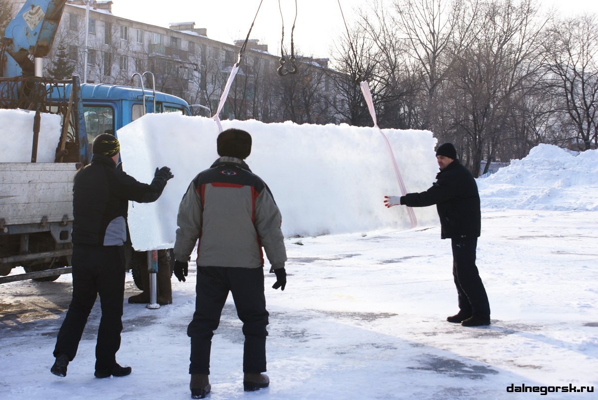 На центральной площади Дальнегорска началось возведение ледового городка вокруг новогодней елки. Хотя сама елка еще не установлена, она займет ставшее уже традиционным место на центральной площади Дальнегорска. Вокруг нее по кругу будут установлены 12 ледовых фигур, высеченных изо льда. Фигуры будут символизировать зодиакальный круг, символы года по восточному календарю, а центральное место займут, конечно, фигуры Деда Мороза и Снегурочки.