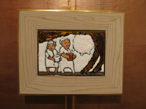 Сюжеты работ Игоря Обухова, представленных на выставке, просты и понятны каждому человеку. На небольших пластинах размером 10 х 15 сантиметров художник в большинстве своём показывает детские забавы, именно от таких сюжетом у посетителей светлеет на душе и поднимается настроение.