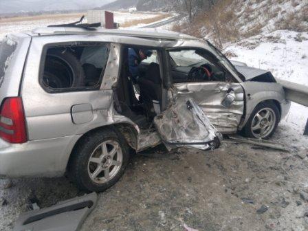 Выезд на полосу встречного движения спровоцировал серьёзное дорожно-транспортное происшествие, в результате которого пострадали 5 человек. Авария произошла в понедельник около полудня в Шкотовском районе края.39-летний мужчина за рулём «Субару Форестер» двигался в сторону г.Находки, на 29 км автодороги «Владивосток-Находка-порт Восточный» транспорт потерял управление и, оказавшись на встречной, совершил «лобовое» столкновение с «Судзуки Эскудо». В результате удара пострадали 5 человек: оба водителя, а также пассажиры, все они были доставлены в больницу с травмами различной степени тяжести.