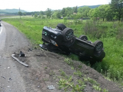 В Приморье перевернувшийся джип протаранил автомобиль на "встречке"