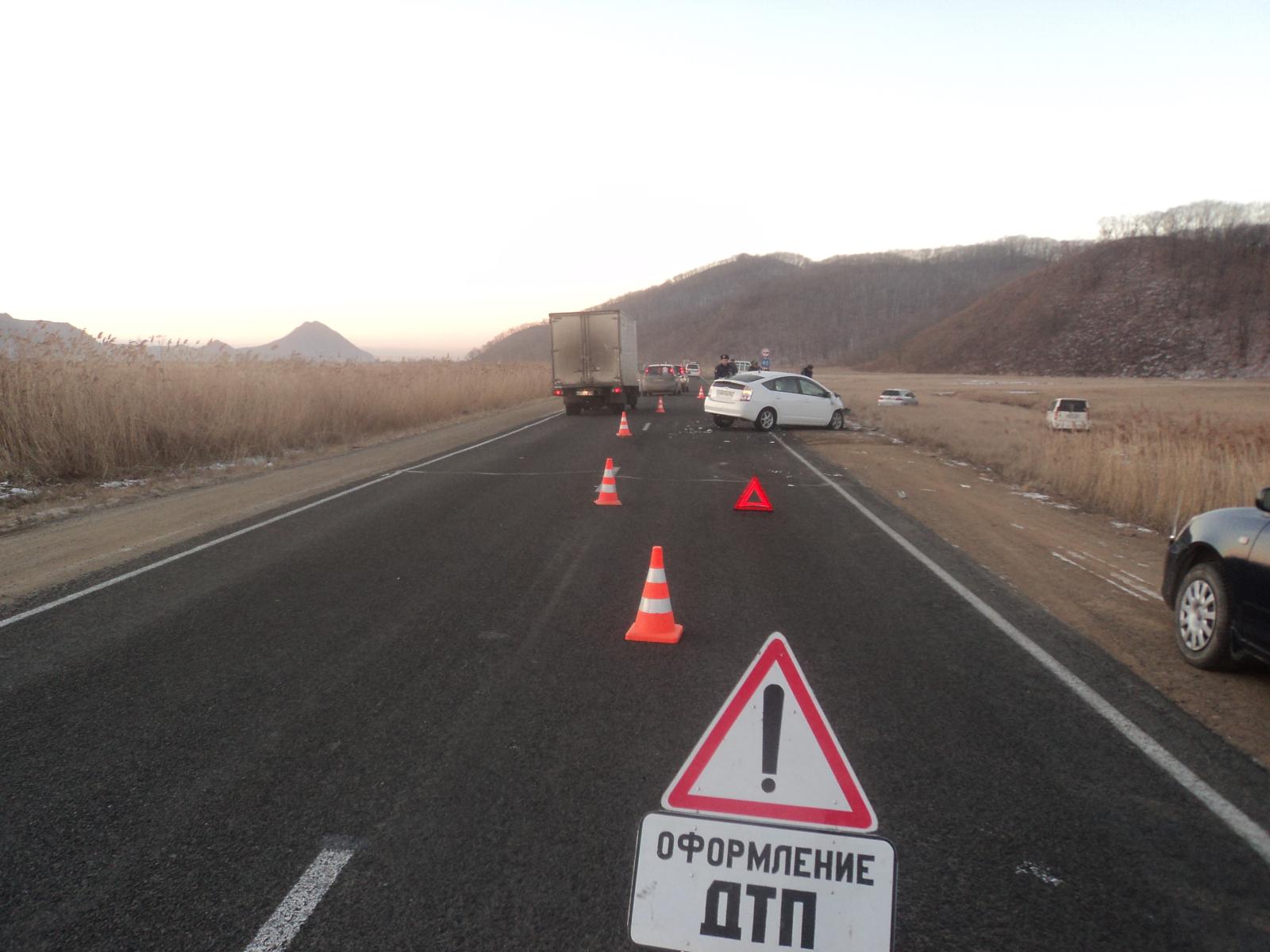Во вторник утром на 8 км автодороги «Находка-Лазо-Кавалерово» произошло «лобовое» столкновение автомашин «Honda Capa » и «Toyota Prius», в результате удара «Honda» отбросило в сторону обочины, где проехав ещё несколько метров, она остановилась.Пострадавшие: две девочки 15 и 12 лет, пассажирки «Prius», получили серьёзные травмы головы, водитель «Honda», молодая девушка, - направлена на амбулаторное лечение, 43-летняя пассажирка «Prius», также направлена на амбулаторное лечение.