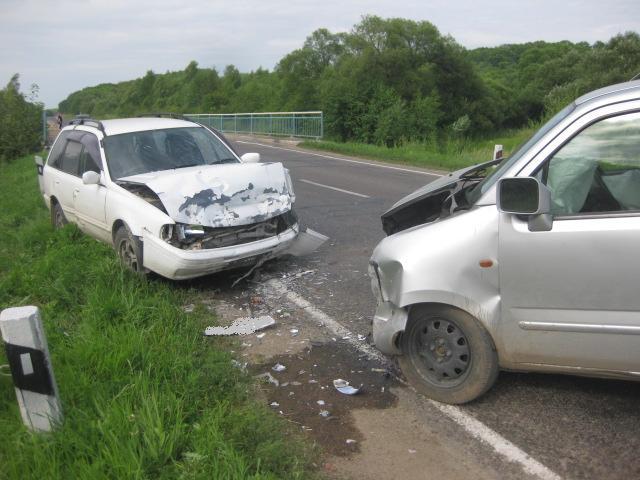Водитель автомобиля «Suzuki Wagon R Solio» при совершении обгона выехал на полосу встречного движения и совершил столкновение с автомашиной «Nissan Wingroad».