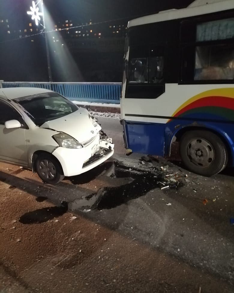 ДТП произошло вечером 5 февраля на мосту с двумя полосами движения. По предварительной информации, со слов очевидцев, в ДТП попал рейсовый автобус, в который въехал легковой автомобиль. Водитель легкового автомобиля выехал на полосу встречного движения, где и столкнулась с автобусом. Информации о пострадавших не поступало.