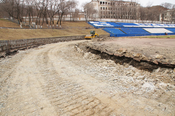 В Находке на стадионе «Водник» начался капитальный ремонт легкоатлетических дорожек. Это первый этап масштабной реконструкции главной спортивной арены, которая выполняется по заданию администрации городского округа.Центральное поле находкинского стадиона «Водник» временно закрыто для спортсменов. Вместо легкоатлетов беговые дорожки заняли экскаваторы, грузовики и другая тяжелая спецтехника. Перед тем как по периметру стадиона появится новое резиновое покрытие, строителям предстоит выполнить немалый объем подготовительных работ.